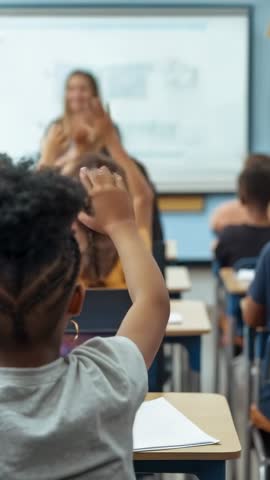 student raising hand