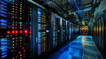 Advanced Technology Illuminated In Modern Server Room Videos