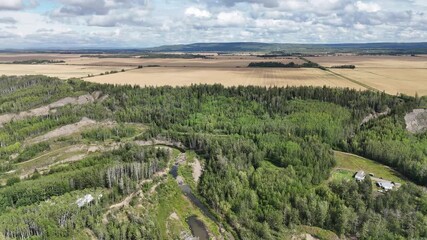 Aerial View Of Meandering River Through Forest And Farmland Videos