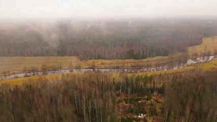 Aerial View Of Meandering River Through Forest And Farmland Videos
