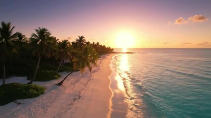 Aerial View Of Tropical Beach With Palm Trees And Turquoise Water Videos