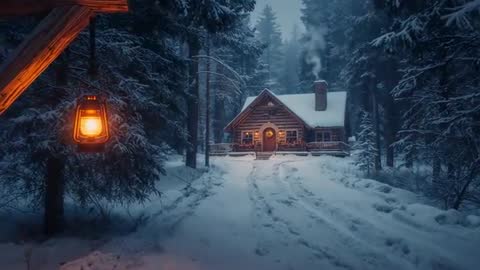 snowy cabin