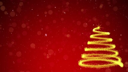 Animated Christmas Tree And Snowfall On Red Background Videos