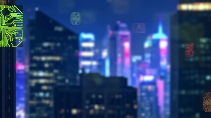 Animated Cityscape With Data Processing Interface Videos