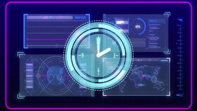 Animated Clock Over Digital Data Interface Videos