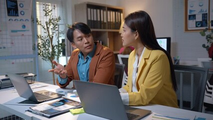 Animated Coworkers Collaborating Over Laptop In Office Setting Videos