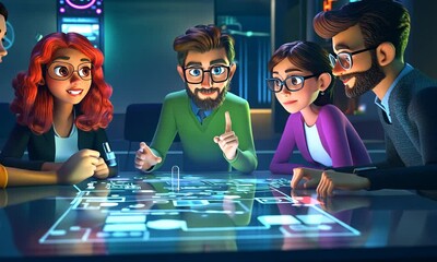 Animated Data Interface With Professionals Collaborating Videos