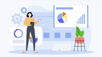 Animated Financial Data Analysis In Office Environment Videos