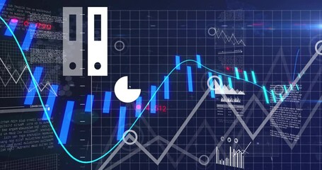 Animated Financial Data Visualization On Blue Grid Background Videos