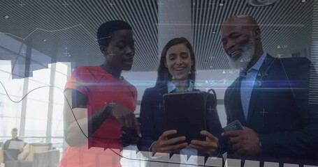 Animated Financial Graph And Diverse Professionals In Discussion Videos
