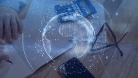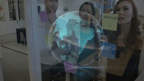 Animated Globe Overlay On Busy Office Videos
