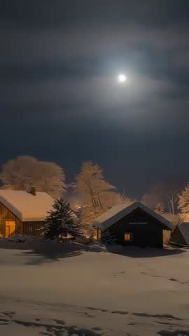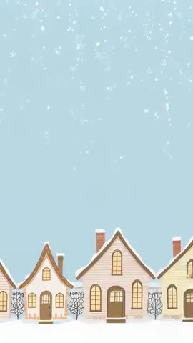 Animated Pastel Village Cottages Sliding Across Snowy Horizon With Gentle Falling Snow Videos