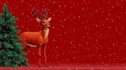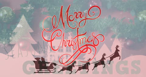 Animated Santa Claus Sleigh With Reindeer On Festive Red Background Videos