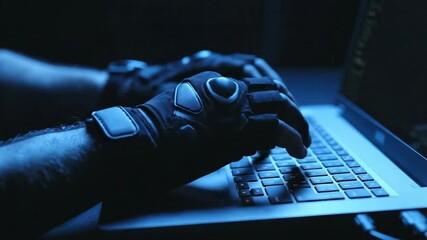 Anonymous Hacker In Gloves Accessing Laptop Network Data Videos