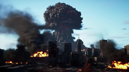 Apocalyptic Nuclear Explosion In Cityscape Videos