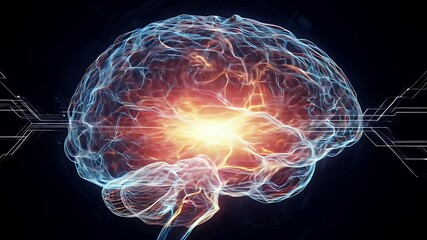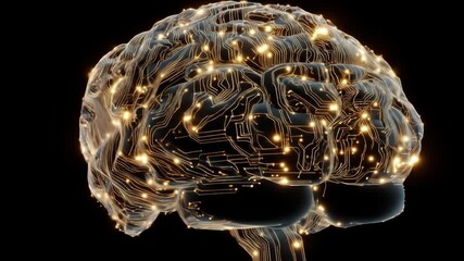 Artificial Intelligence Brain With Digital Circuitry On Black Background Videos