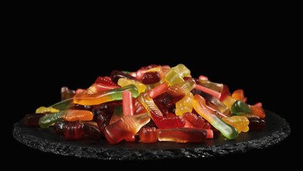 Assorted Jelly Candy On Yellow Background Videos