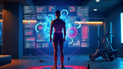 Athlete Analyzing Performance With Digital Data Visualization Videos