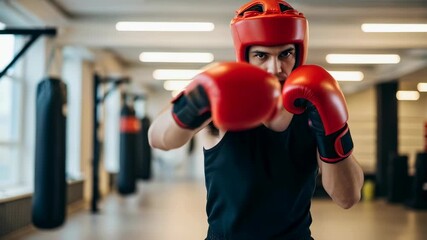 Athletic Man Practicing Boxing With Red Gloves Videos