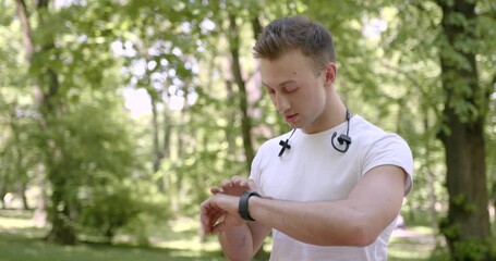 Athletic Man Using Smartwatch For Outdoor Workout Videos