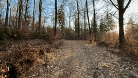 Autumn Leaves Drifting On Sunlit Forest Pathway Videos