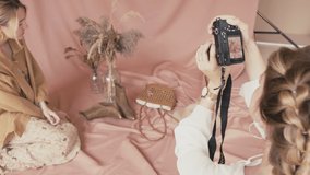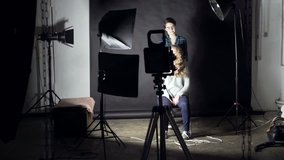 Backstage Models Posing At Vanity Lights While Director Gesturing Candid Vertical Casting Video Videos