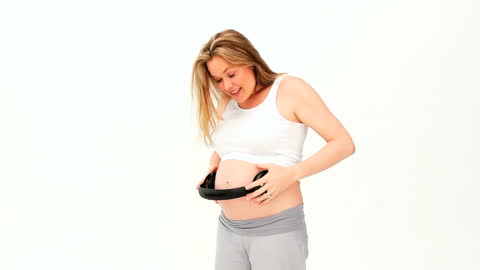 headphones on belly