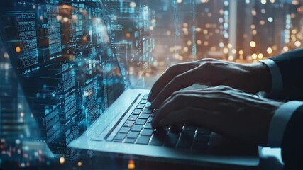 Binary Code And Network Connections Overlay On Laptop Usage Videos