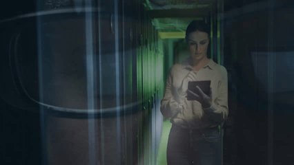 Binary Code Overlay On Advanced Data Center Server Room Videos