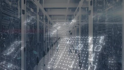 Binary Code Overlay On Empty Server Rack In Data Center Videos