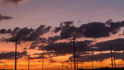 Binary Code Overlaying Wind Turbines At Sunset Videos