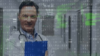Binary Coding And Neon Qr Code In Medical Technology Visualization Videos