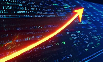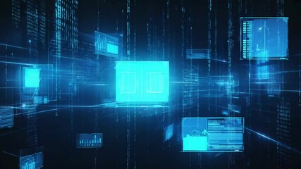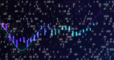 Binary Data Flow With Financial Chart On Dark Grid Background Videos