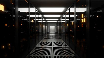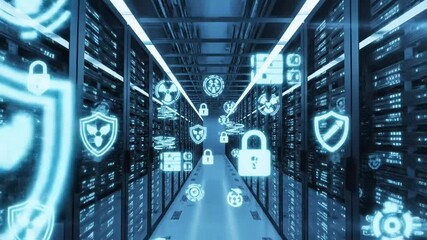 Blockchain And Network Security Concept With Server Room Background Videos