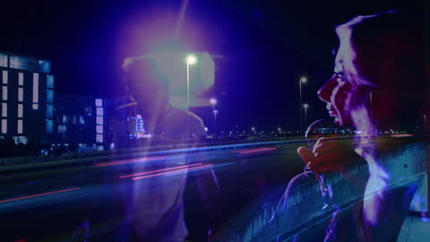Blurred City Nightlife With Hexagon Pattern Overlay Videos