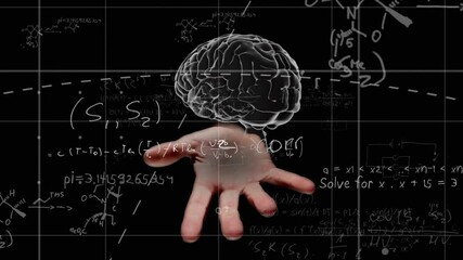 Brain Network Animation With Mathematical Formulas On Dark Grid Videos