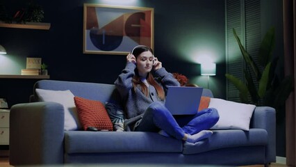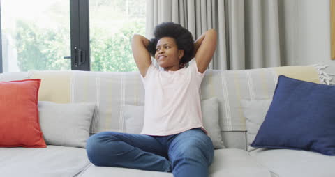 Brunette Woman Relaxing On Sofa Using Tablet At Home Videos