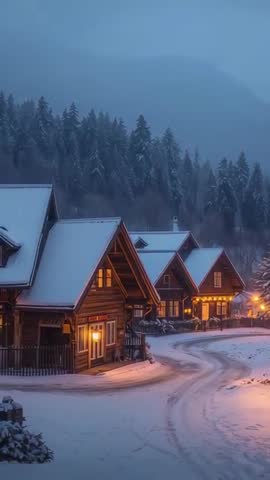 snowy cabins