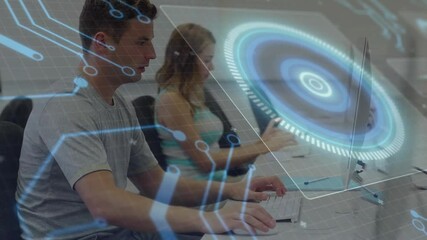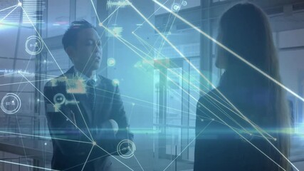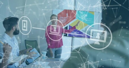 Business Colleagues Collaborating With Digital Network Interface Overlay Videos