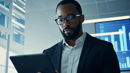 Business Executive Analyzing Data On Tablet Videos