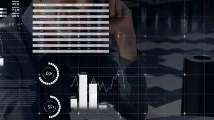 Business Professional Using Smartphone With Digital Analytics Overlay Videos