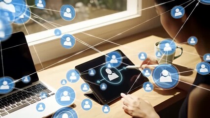 Business Professional Using Tablet With Digital Network Concept Videos