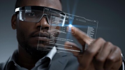 Business Professional With Augmented Reality Interface Display Videos