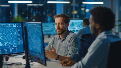 Business Professionals Analyze Data Visualization With Advanced Tech Videos