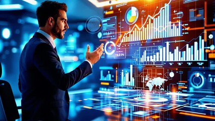 Business Professionals Analyzing Data With Futuristic Interface Videos