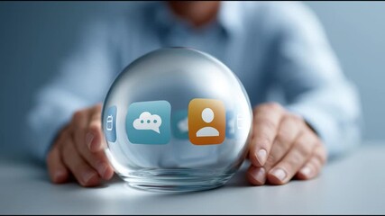 Business Professionals Analyzing Social Media Analytics With Floating Icons Videos