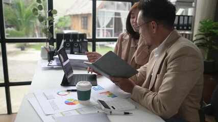 Business Professionals Discussing Data In Modern Office Setting Videos