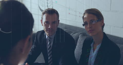 Business Professionals Discussing Strategy With Financial Graphics Overlay Videos