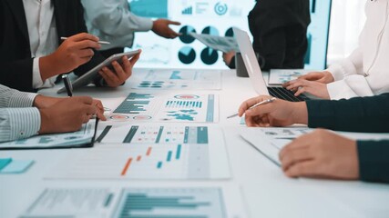 Business Professionals Engaged In Discussion With Data Visualization Videos