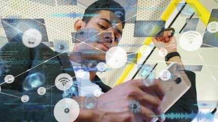 Business Professionals Using Digital Devices With Data Overlay Videos
